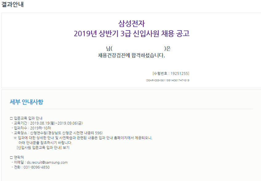 삼성 채용검진 / 2019 상반기 삼성디스플레이 종합면접 합격 네이버 블로그